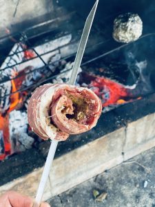 Kepame ant žarijų kol gražiai apskrunda nuolat vartydami arba surišę konditeriniu siūlu dedame kepti į orkaitę, kol vidinė temperatūra pasieks 58 laipsnius.