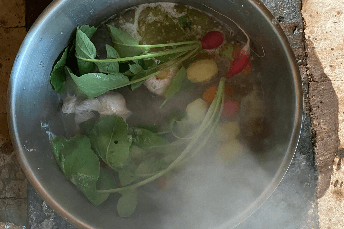 Bulves ir morkas nusiskutame ir pjaustome vienodo dydžio gabalėliais(maždaug pusės nykščio dydžio) ar švariai nuplauname jei naudojame šviežias mažas bulvytes ar morkytes. Dedame į šaltą padruskintą vandenį ir verdame kol smeigiant smeigtuku nebejaučiame stipraus pasipriešinimo(tačiau neperverdame), tuomet nukošiame vandenį. Nupylus vandenį, puodą su išvirtomis bulvėmis ir morkomis gražiname ant kaitros(vidutinė), dedame 40g sviesto, nuplautus ridikėlius, pilame šaukštą vandens ir sukamu judesiu maišome kol sviestas susijungia su vandeniu(tampa emulsija), dedame česnaką, daržovės sušyla ir užsiglazuruoja. Padruskinam jas ir dedame į lėkštes.
