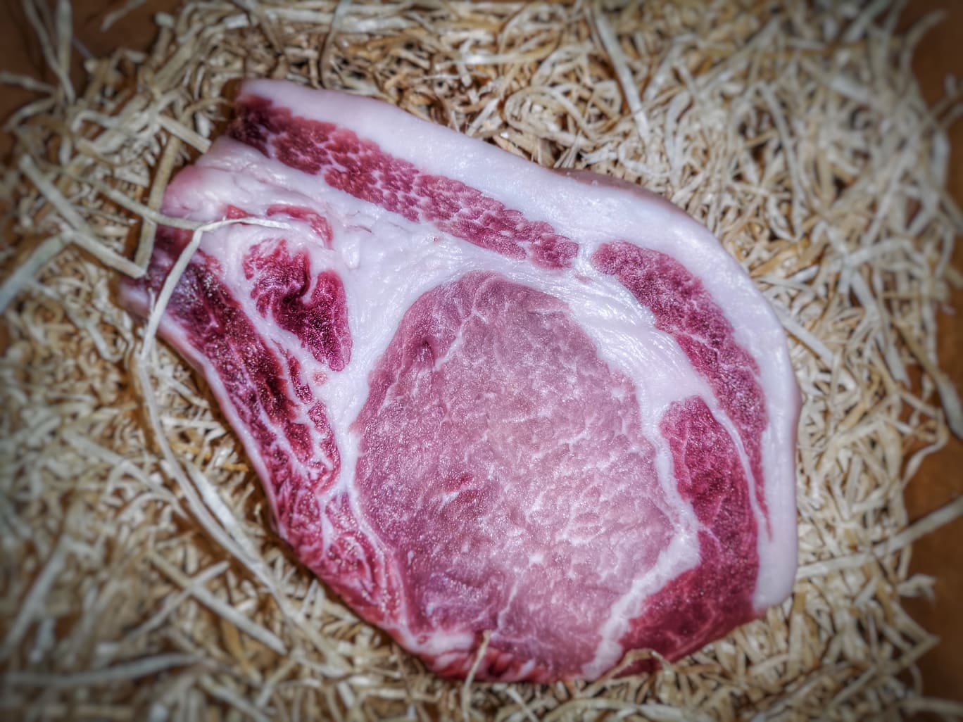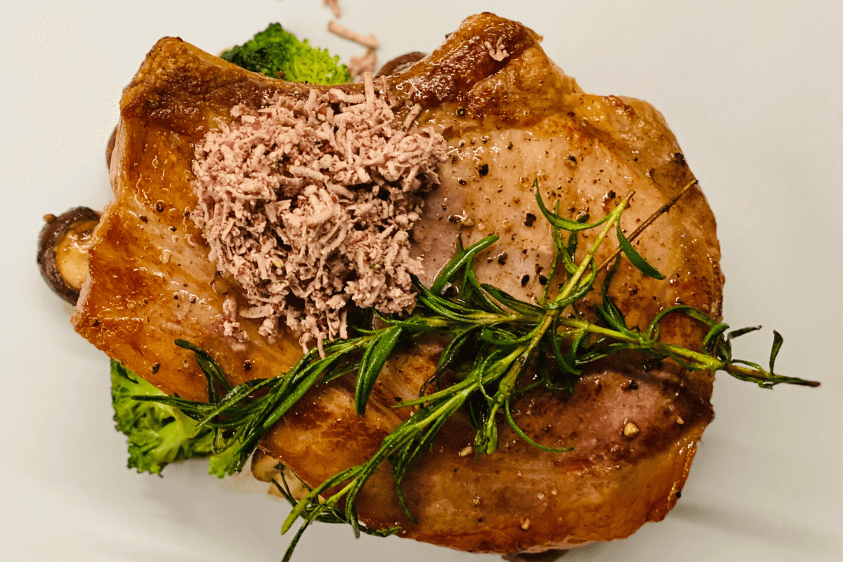 Brandintos Duroc kiaulienos pjausnys su kaulu (chop)
