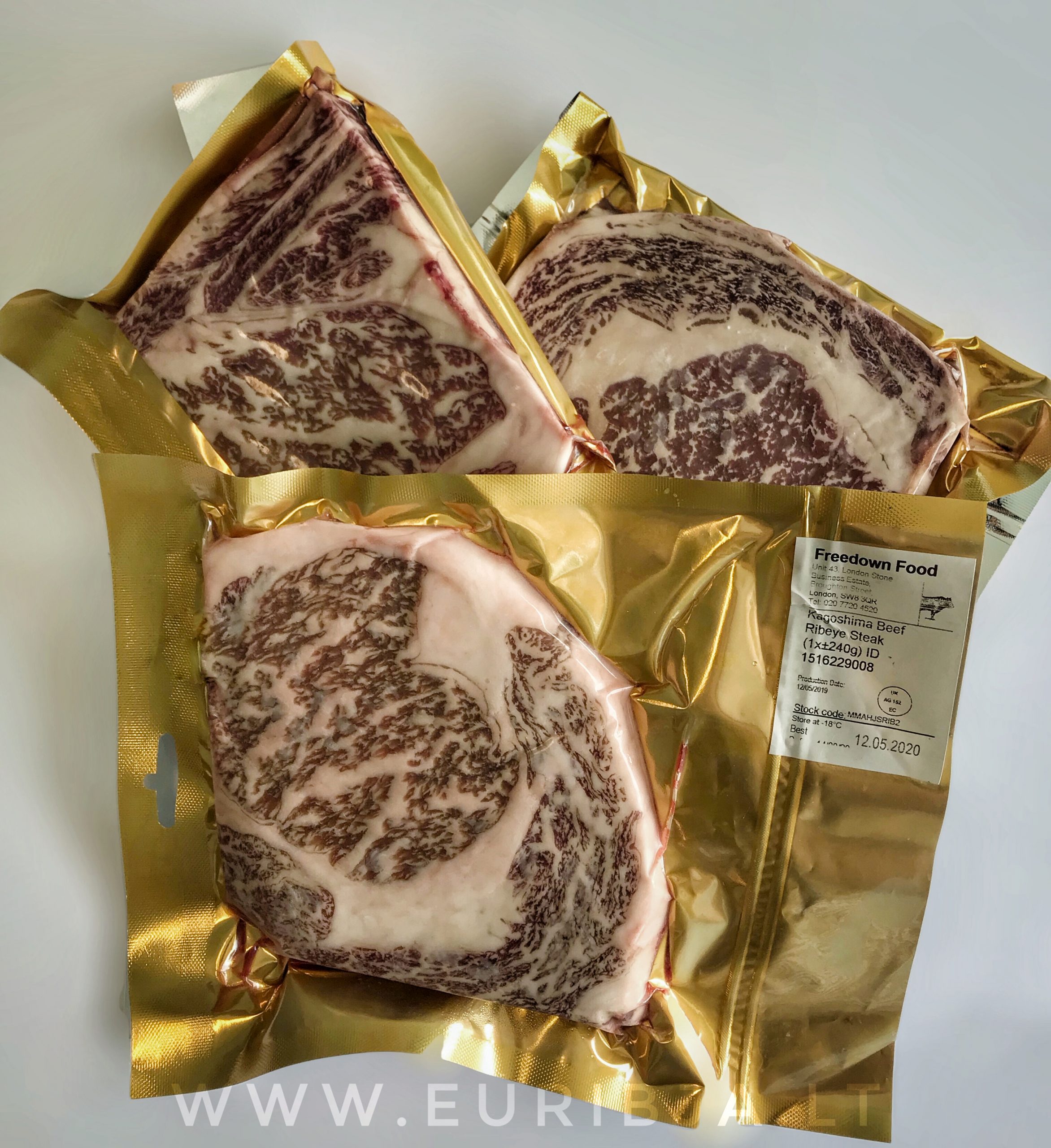 Grynakraujės japoniškos Wagyu jautienos rib eye steikas