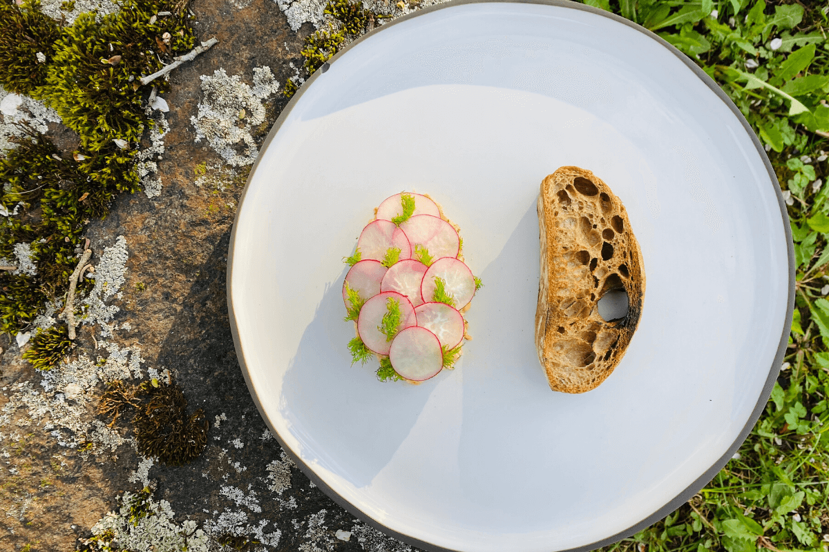 Į lėkšte dedame šaukštą arkties poliu rillette (užtepėlės), ant viršaus užleisdami vieną ant kito dedame plonais griežinėliais pjaustytą ridikėlį bei krapų šakeles. (prispausdami po ridikėlių griežinėliais). Kartu patiekiam skrudintos duonos riekę.